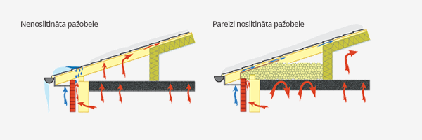Ēku renovācijas laikā, izbūvējot bēniņus, nereti tiek padomāts, lai siltums neizplūst no jaunuzbūvētās telpas, taču tiek aizmirsts par pažobeļu siltināšanu. Tās sastāda ap 30% no kopējās siltināmās pārseguma platības, tādēļ, veicot to siltināšanu, palielinās energoefektivitāte, samazinot apkurei patērētos līdzekļus. Kā redzam zemāk attēlotajā shematiskajā zīmējumā, siltums no apakšējā stāva nokļūst pažobelē caur papildus nenosiltināta izdedžu slāņa, kausējot uz jumta sniegu un veidojot lāstekas.